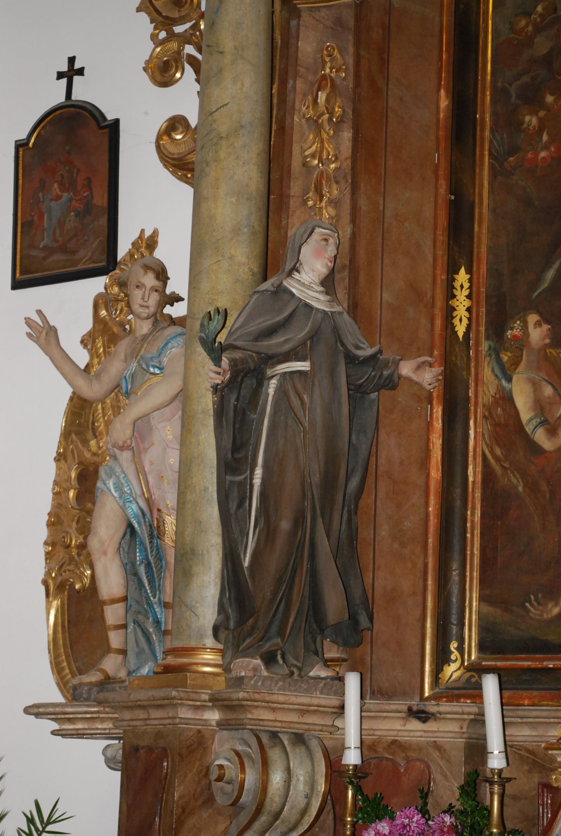 A Borbála-oltár őrtállóinak egyike, a ferences habitust viselő Klára