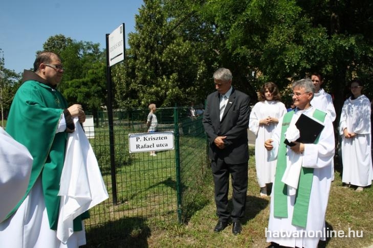 A szentmisét követően koszorúkat helyeztek el a templom oldalán lévő emléktáblákhoz, majd átvonultak a Korona Étterem mellé, ahol Lengyel Donát felszentelte az utcanév táblákat. Így Újhatvanban már van P. Kriszten Rafael és P. Lukács Pelbárt utca is.