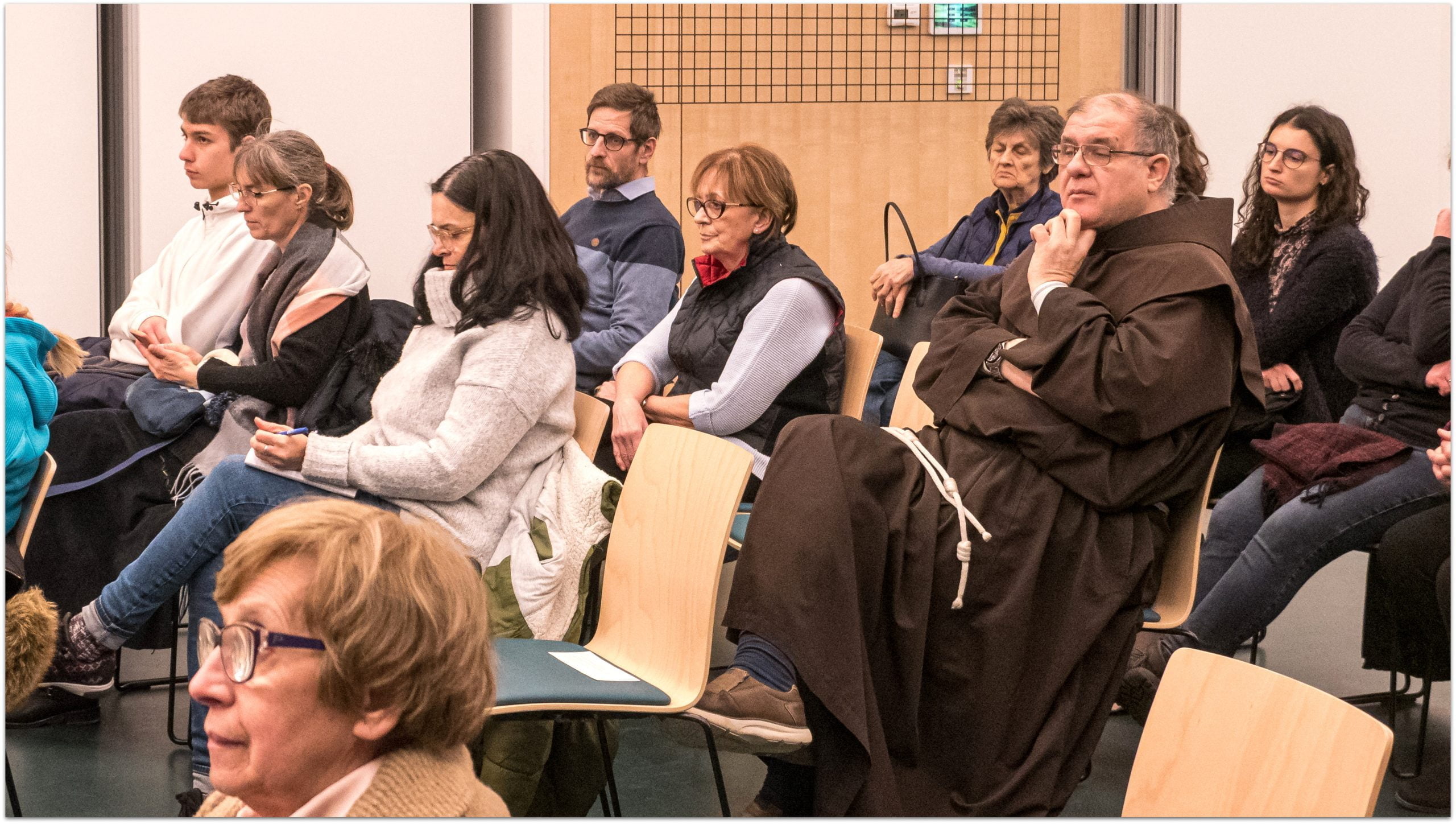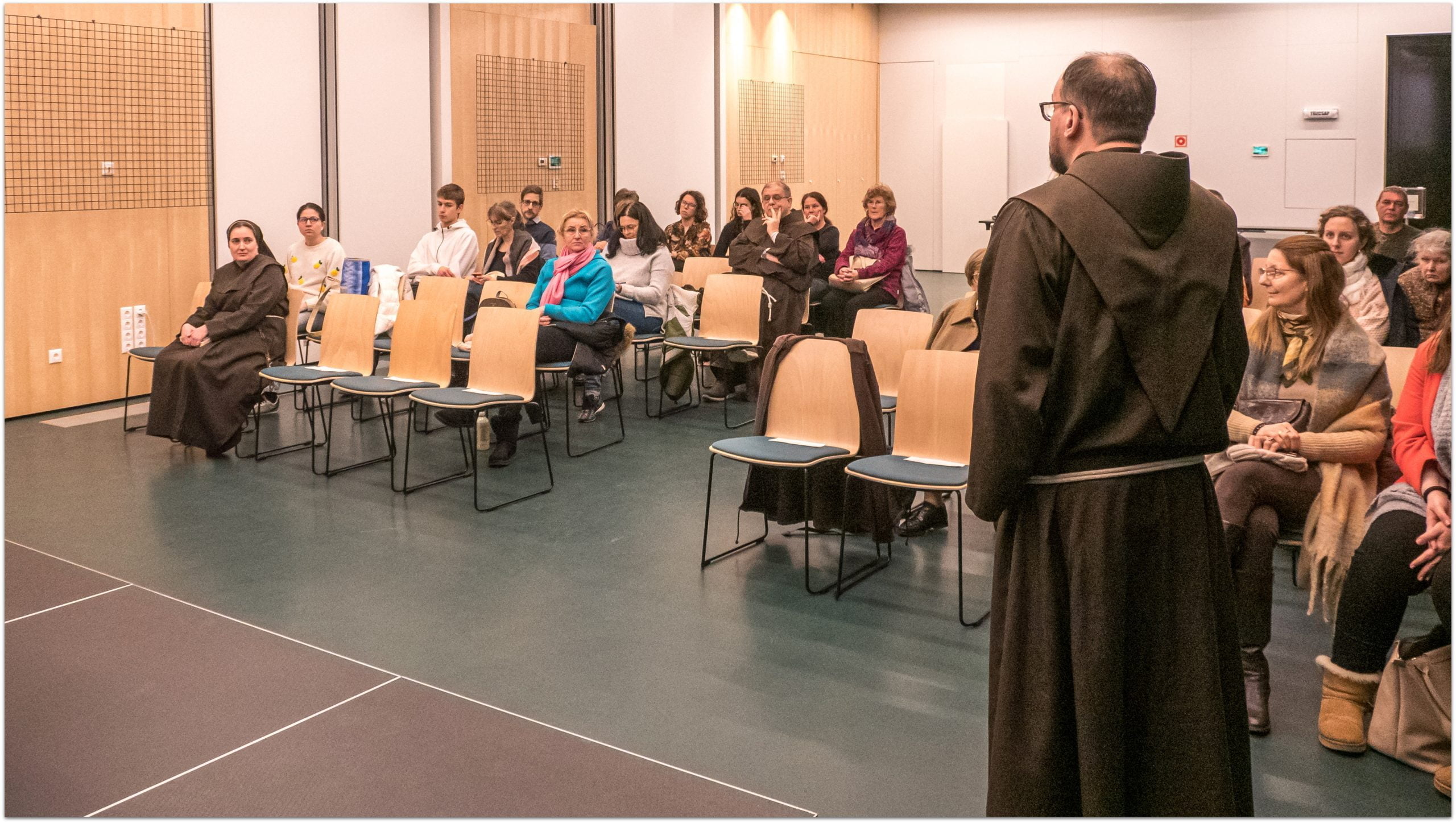 Arra is rákérdeztek a közönség soraiból, milyen igazából, konkrétan a ferences szegénység: lehet-e három edzőcipője valakinek, vagy értékes könyvtára?