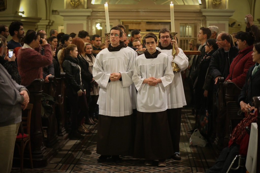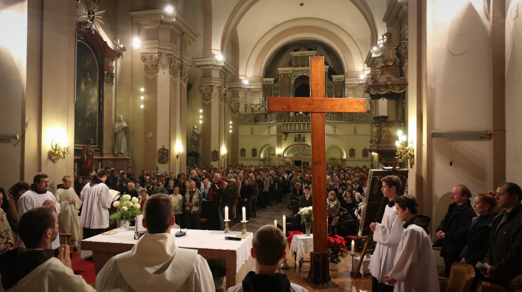 A budai ferences templom és kolostor, mely a Margit körút elődjéről, a Budáról Bécsbe vivő országútról kapta a nevét, már jóval a liturgia kezdete előtt megtelt a kereszt és az ikon fogadására összegyűlt fiatalokkal.