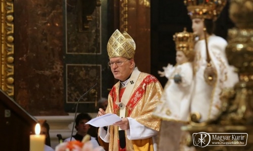 Erdő Péter a szentmise elején hálát adott, amiért a Szűzanya kegyszobra a Szent István-bazilikában vendégeskedett a kegyhely felújítása idején, és oly sokan imádkoztak és találtak különleges meghallgatásra előtte. Arra kérte a híveket, fohászkodjanak továbbra is a Szűzanya közbenjáró segítségéért és kísérjék szeretettel a kegyszobrot, amikor közel nyolc hónap után visszatér nemzeti szentélyünkbe, Mátraverebély-Szentkútra.