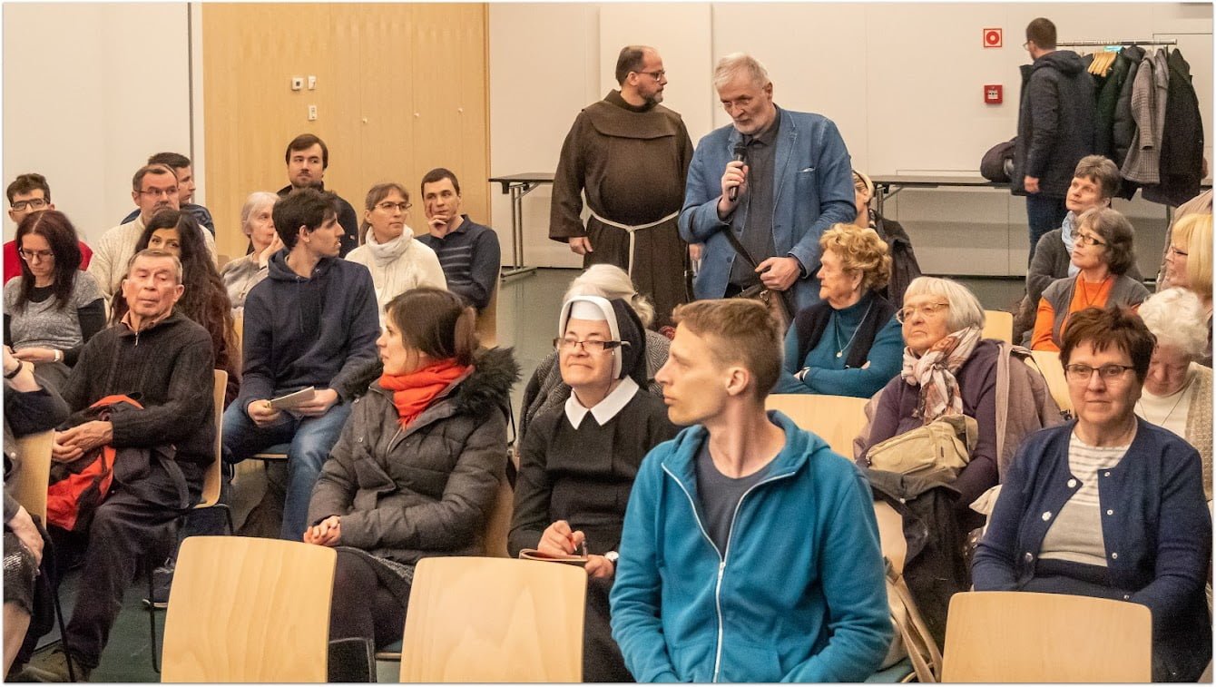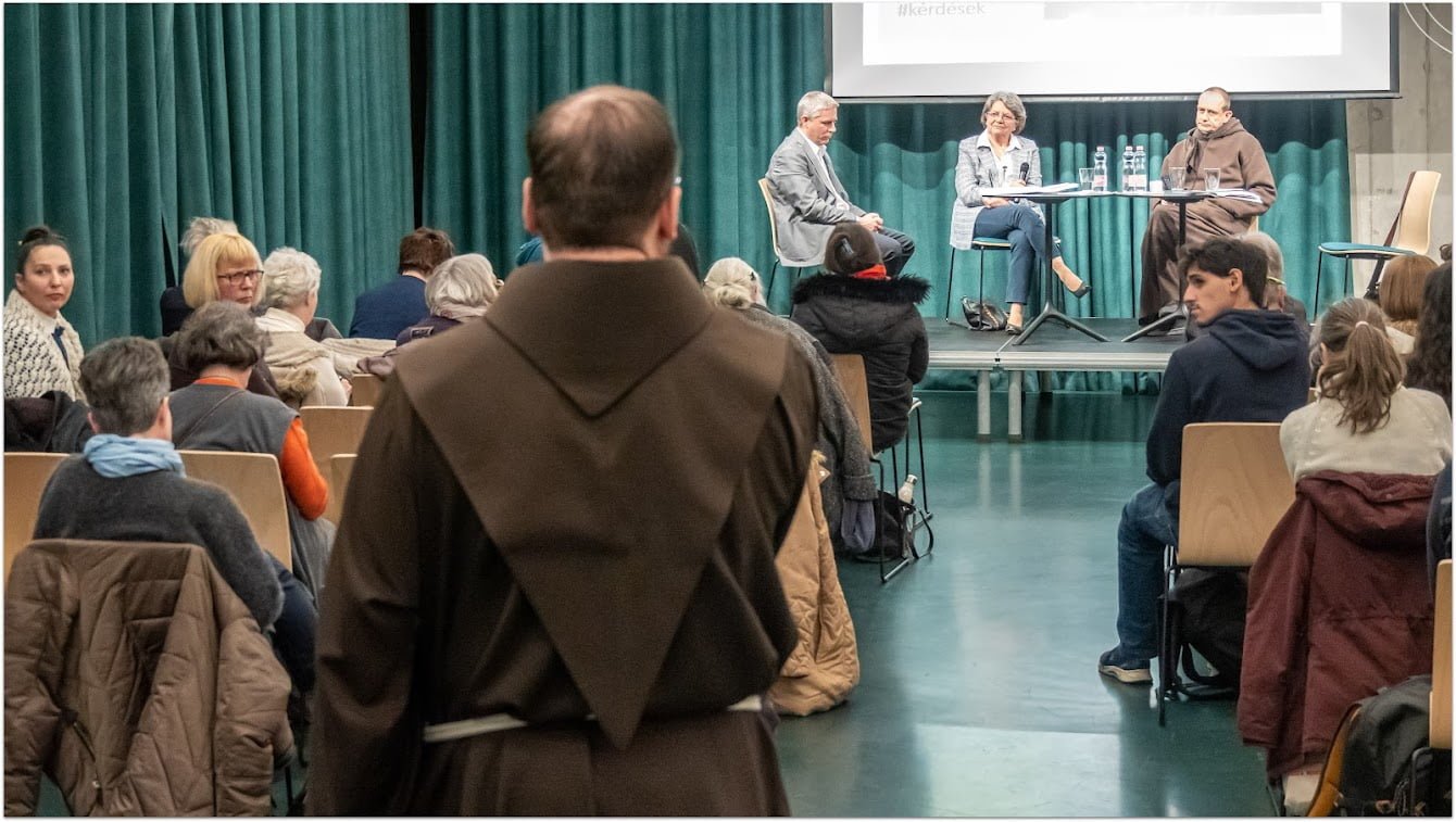A beszélgetés ezen pontján bevonták a közönséget is, akik felől sok kérdés és hozzászólás érkezett. Így szóba került például a klerikalizmus témája is, amelyben azért történt már haladás a szerzetesek szerint, illetve Dobszay Benedek hozzáfűzte: átadnának sokan örömmel feladatot, de nincs kinek – az egész közösség változása kell a „klerikalizmus” lebontásához.