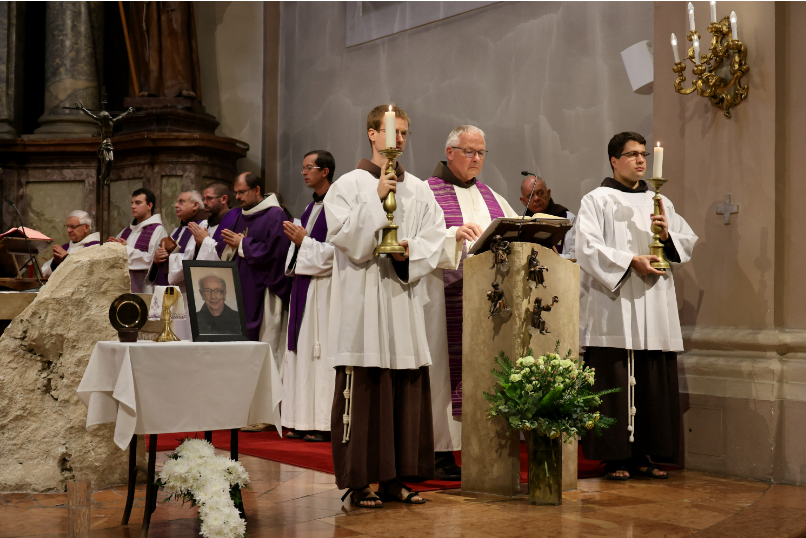 Páldeák Iván Szabolcs atyát 2024. július 15-én, hétfőről keddre virradó éjjel magához szólította az Úr. Szeretett rendtársunkat a budapesti Országúti Ferences Plébániatemplomban kísértük végső útjára augusztus 1-jén. A gyászmisén Berhidai Piusz OFM tartományfőnök mondott prédikációt. Szabolcs atyától rendtársai, hozzátartozói, barátai, egykori tanítványai, munkatársai és lelkivezetettjei is búcsúztak.