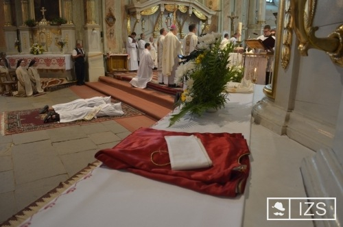 A jelöltek ünnepélyes ígéretet tettek a szolgálattal járó kötelezettségek vállalására, majd a főpásztor elé járultak engedelmességet ígérve neki és utódainak. A szentelést követte a beöltözés: Hugó testvér beöltözött a szerpapi öltözékbe, a keresztben viselt stólába és dalmatikába, majd átvette az érsektől az evangéliumos könyvet.