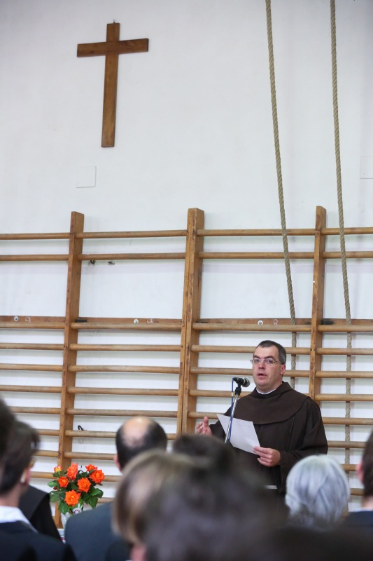 „Ugyanakkor életünk a jó és rossz dolgok keveréke, a tanévben is történtek velünk kudarcok, értek nehézségek, cselekedtünk mi magunk rosszat. Ezt sem hagyhatjuk figyelmen kívül – fogalmazott az igazgató. – Ha a történelemre tekintünk, láthatjuk, az emberiség évezredek óta próbálkozik azzal, hogy az őt érő rosszra az erőteljes agresszió válaszát adja, és láthatjuk ennek kudarcát. A rosszat a jóval lehet legyőzni – mutatja az emberi együttélés. A mai napi evangélium szerint az ember számára a jó cselekedetek mellett – ezek hatástalansága esetén – ott van az imádság és a böjt.”